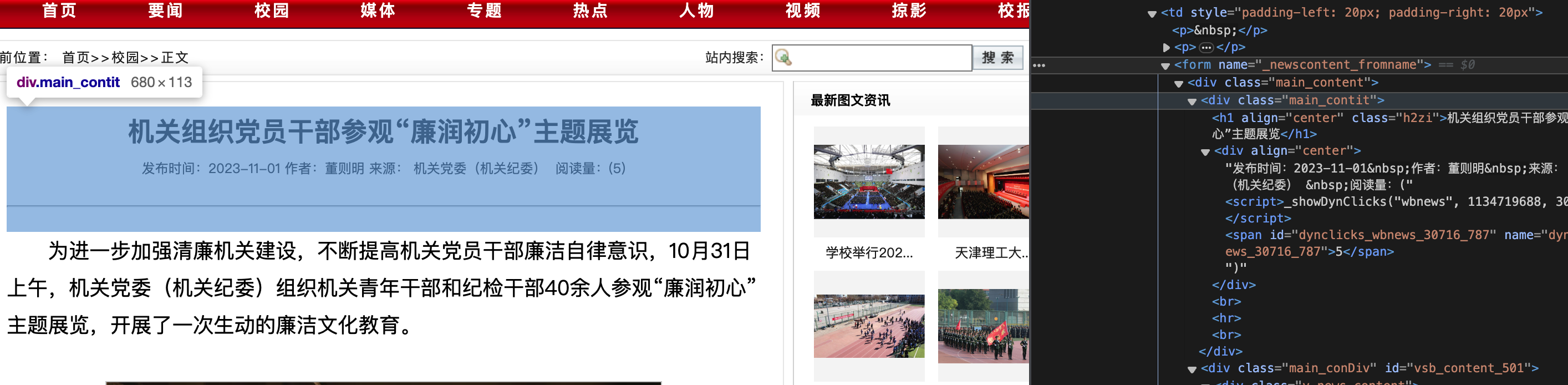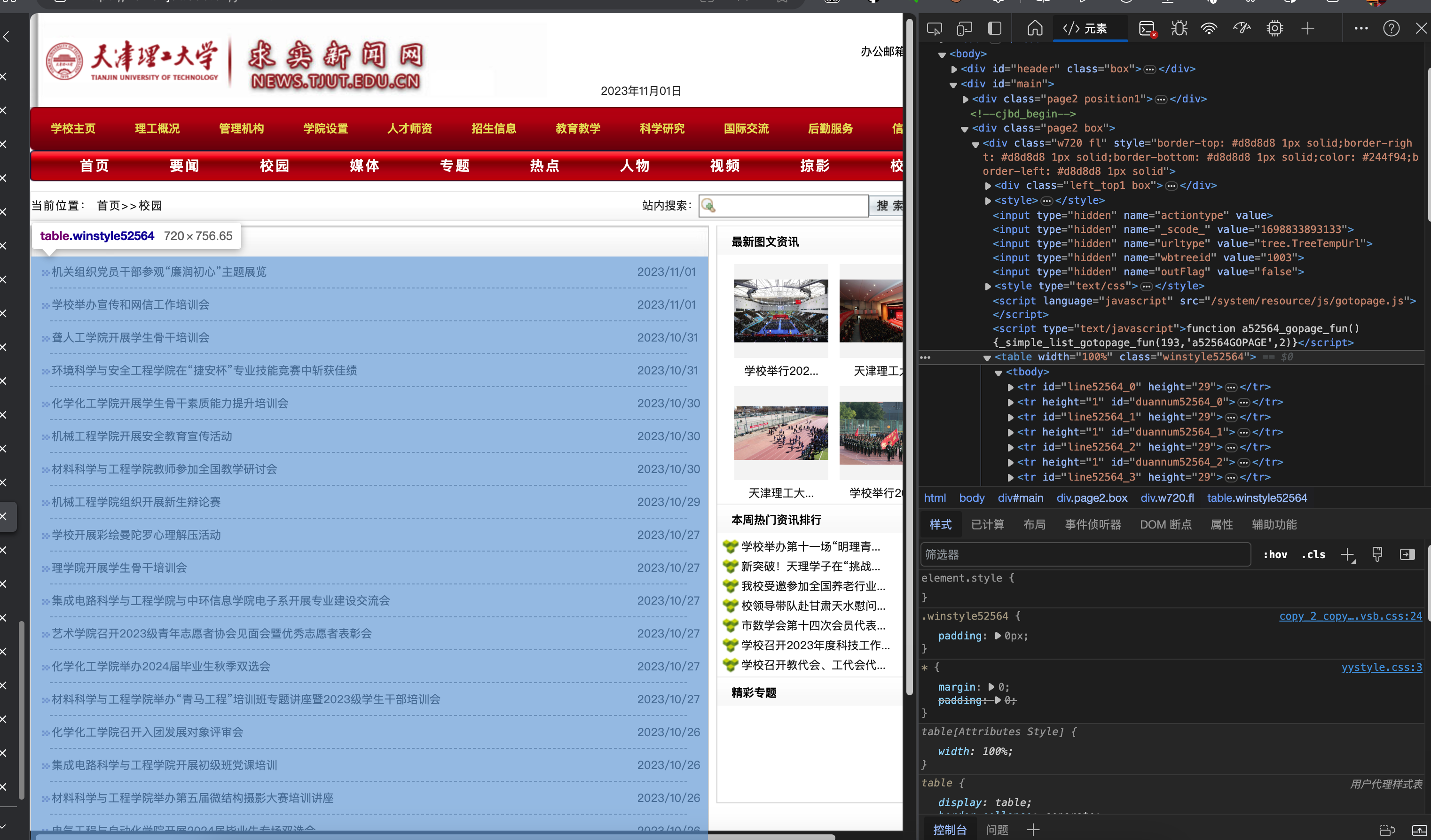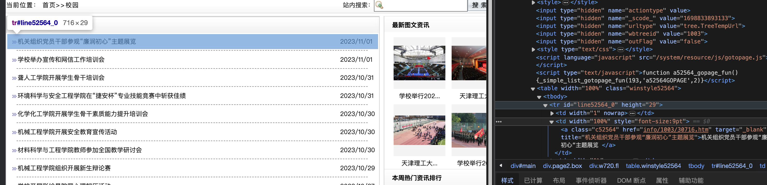 首先确定目标网站 https://news.tjut.edu.cn/yw1.htm , 到页面上右键"检查元素"