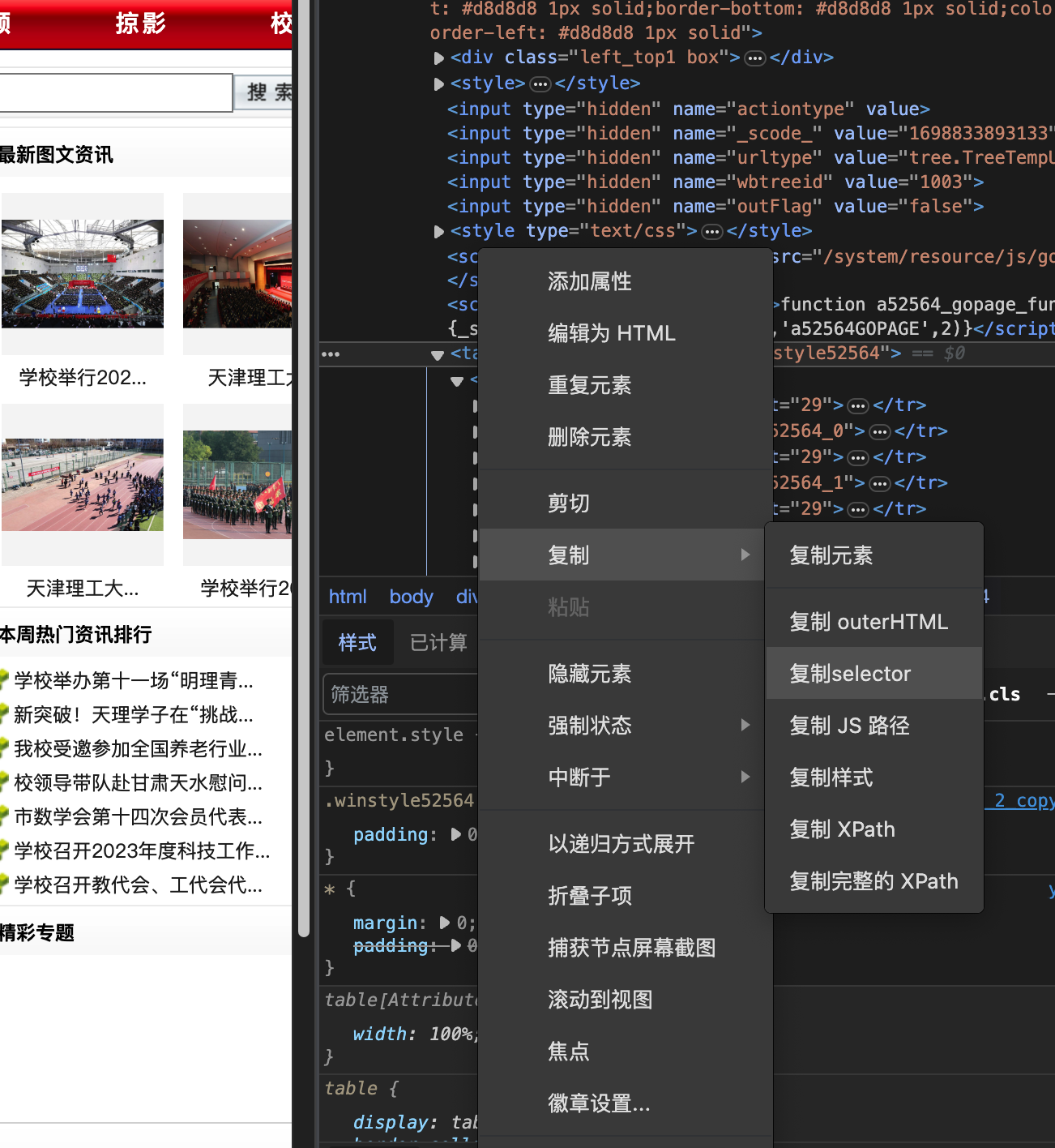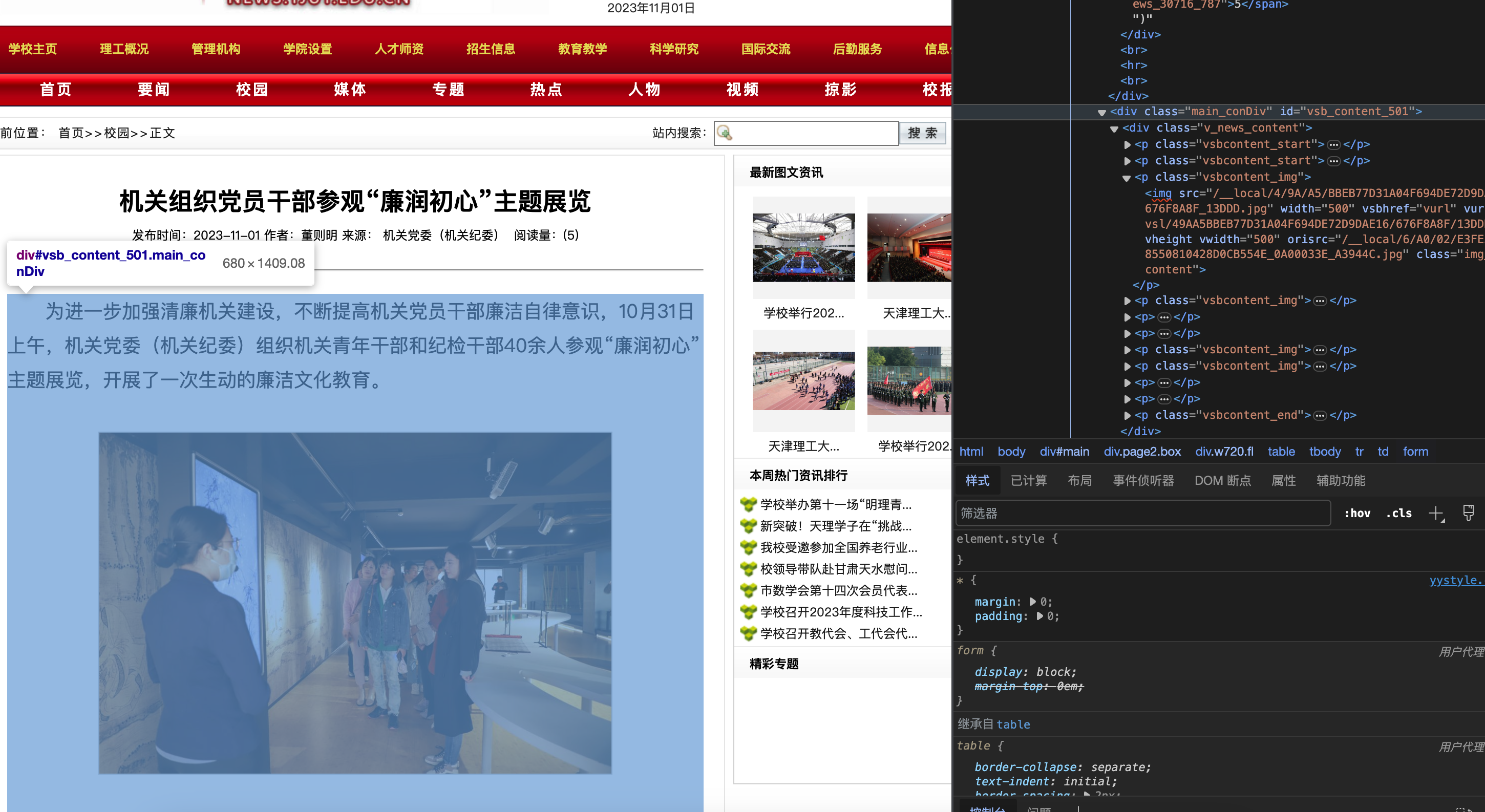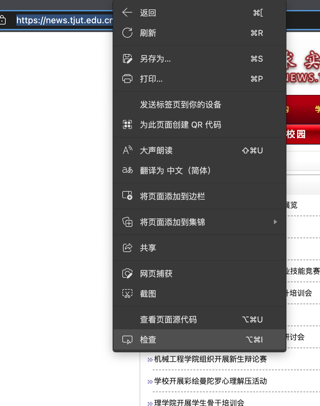 首先确定目标网站 https://news.tjut.edu.cn/yw1.htm , 到页面上右键"检查元素"