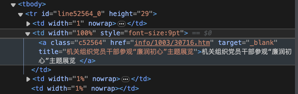 可以观察到,新闻列表中tr的第二个td元素内为有效的链接元素: