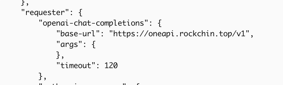 参考 元数据配置,本例中我们添加的模型 requester 设置为 openai-chat-completions ,token_mgr 设置为 openai,例如: