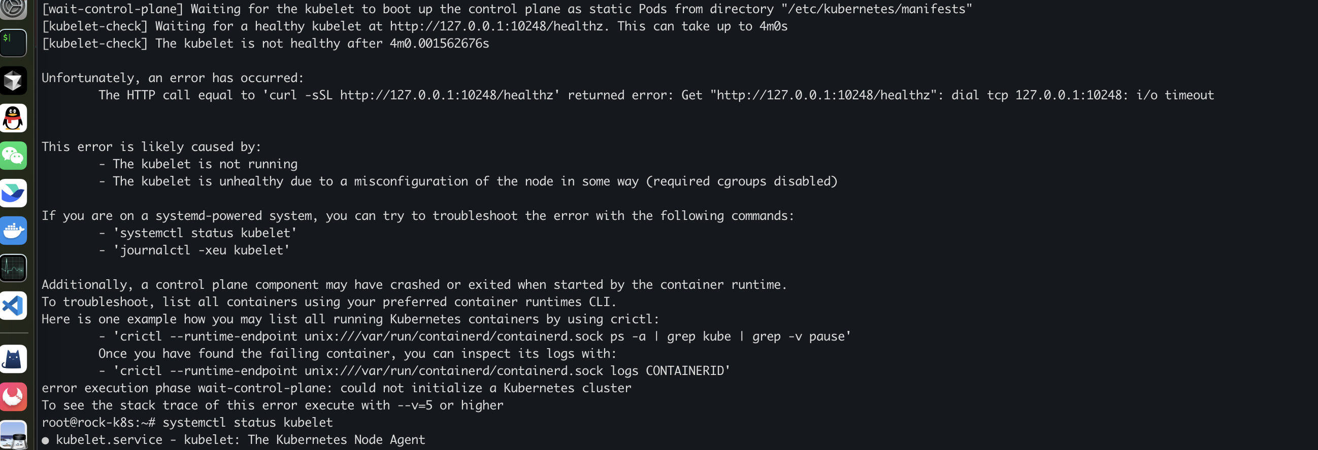 似乎是kubelet 没有在运行,折腾半天也没搞清楚。后来把 swap 给关了: