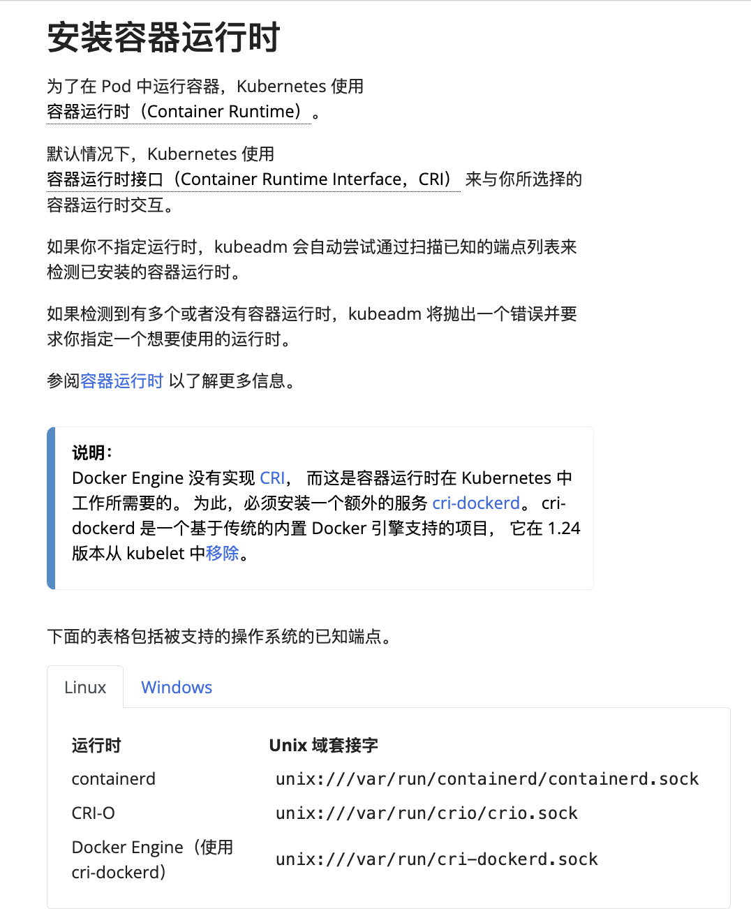 按照教程所说,先配置 容器运行时,我这里选的是 containerd。