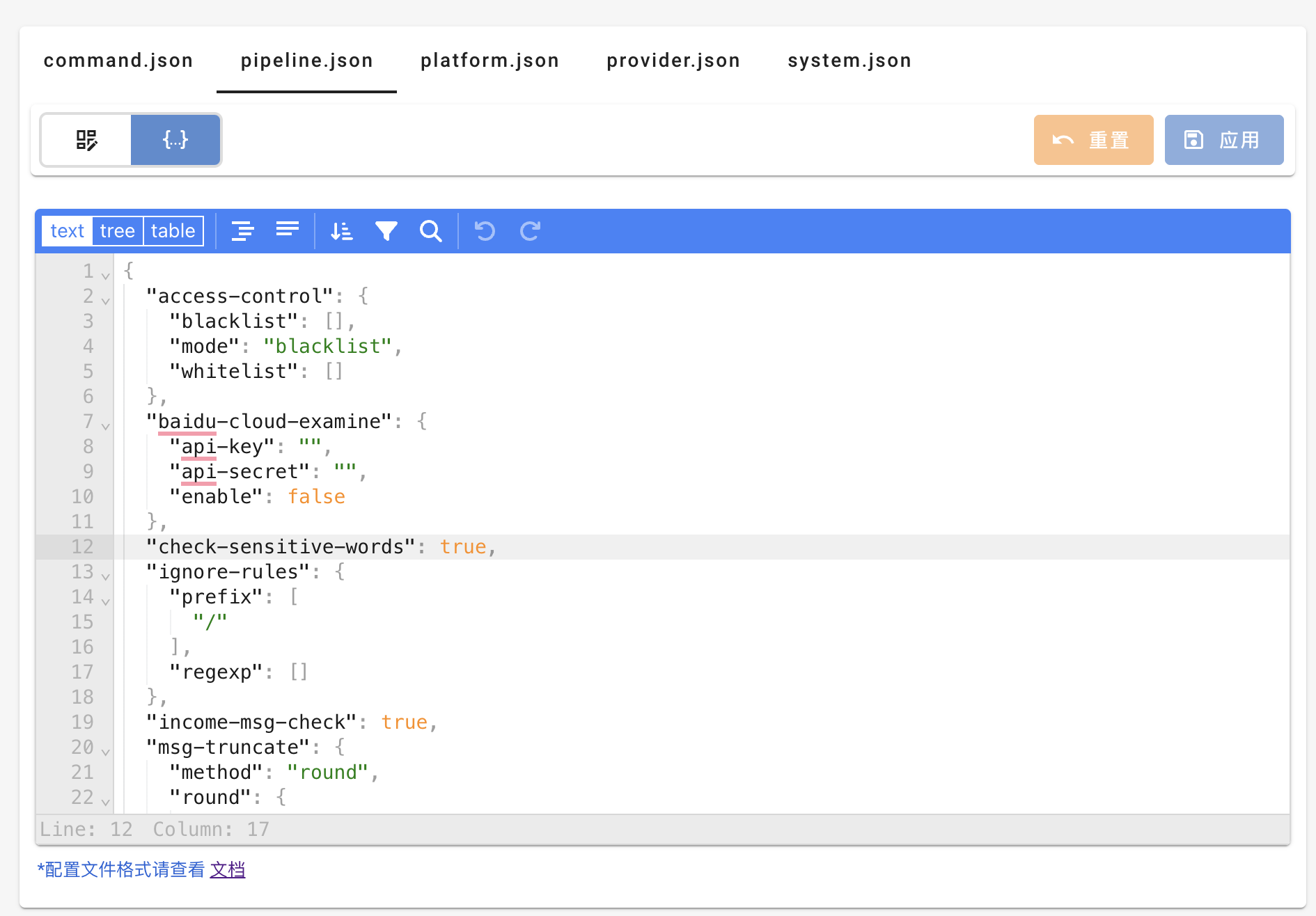 注册配置管理器时的 JSON Schema 是可选的,只有在提供了 JSON Schema 时才允许使用可视化编辑器。同时也提供了 JSON 编辑器: