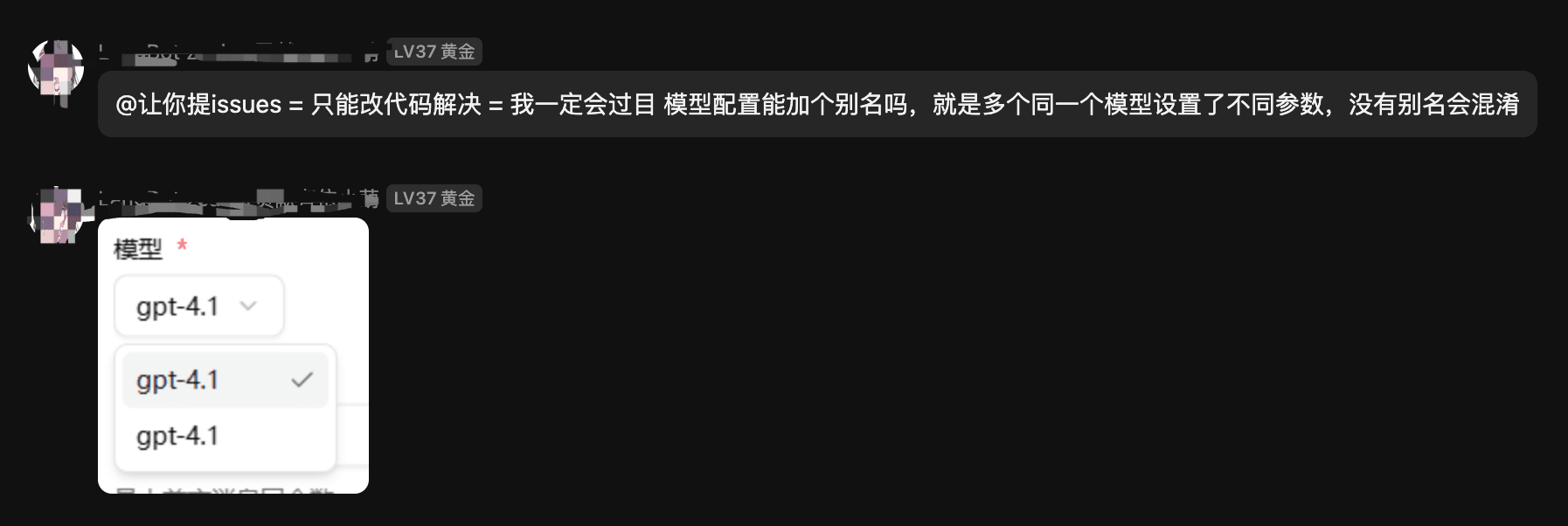 我发了新版之后,由于 4.0 允许同时配置多个模型,并且可以被在流水线中选择。有一个老用户就跟我抱怨:我配置了好几个同名的模型,这个下拉框分辨不了啊!